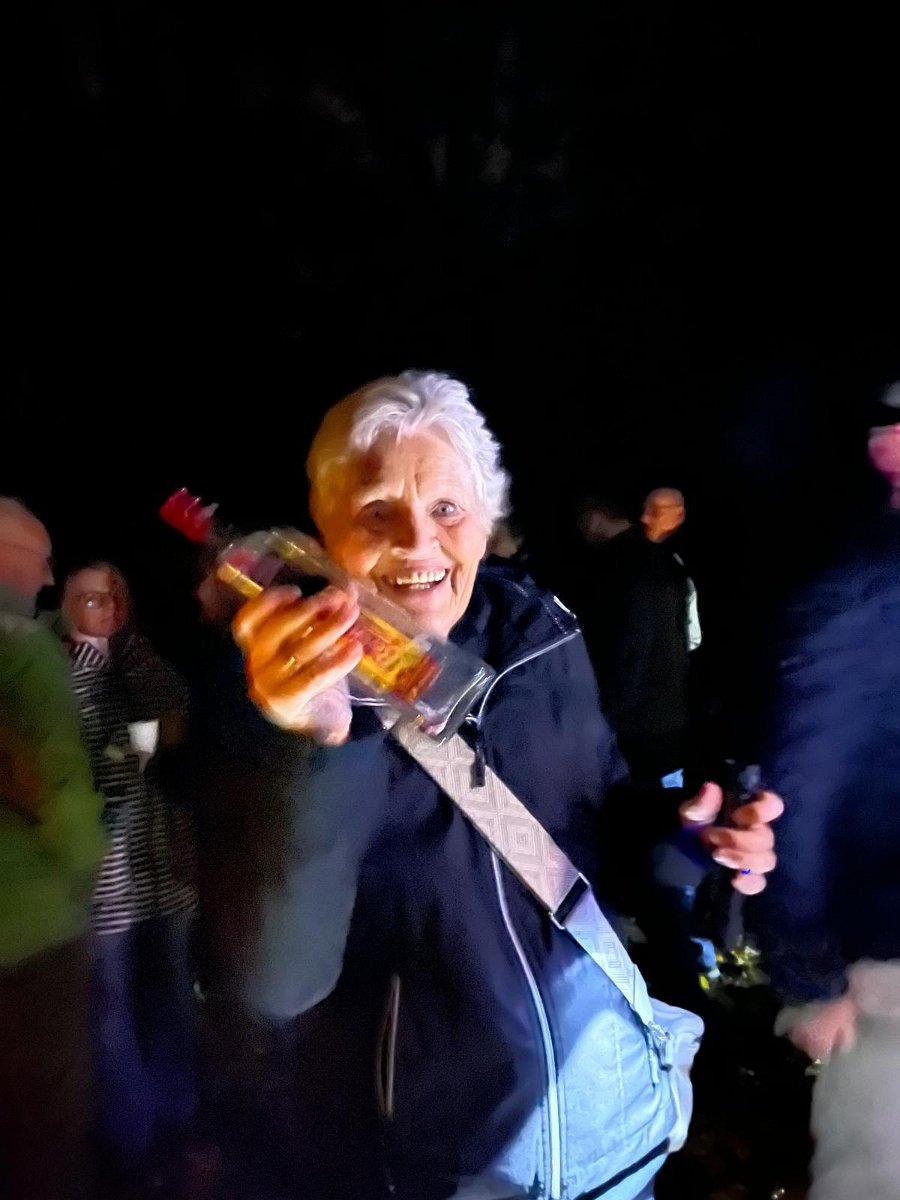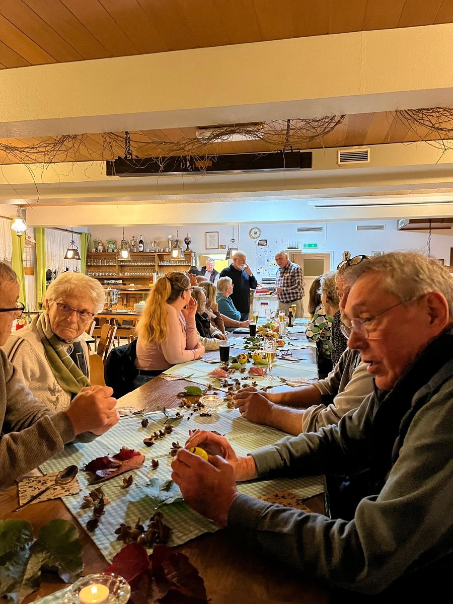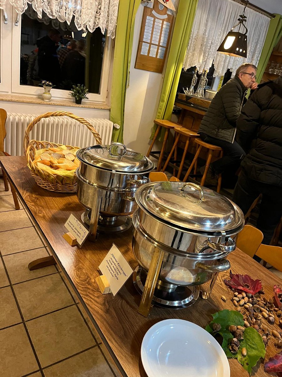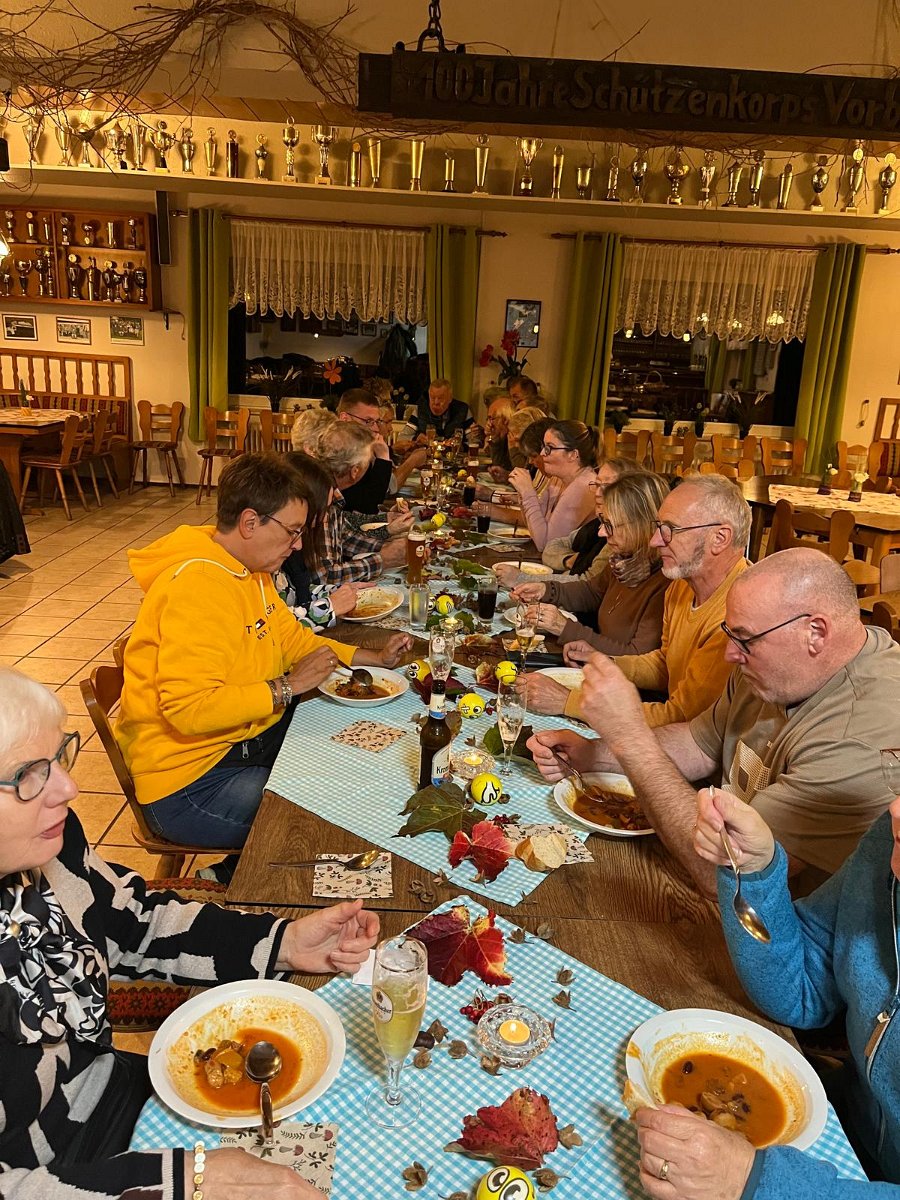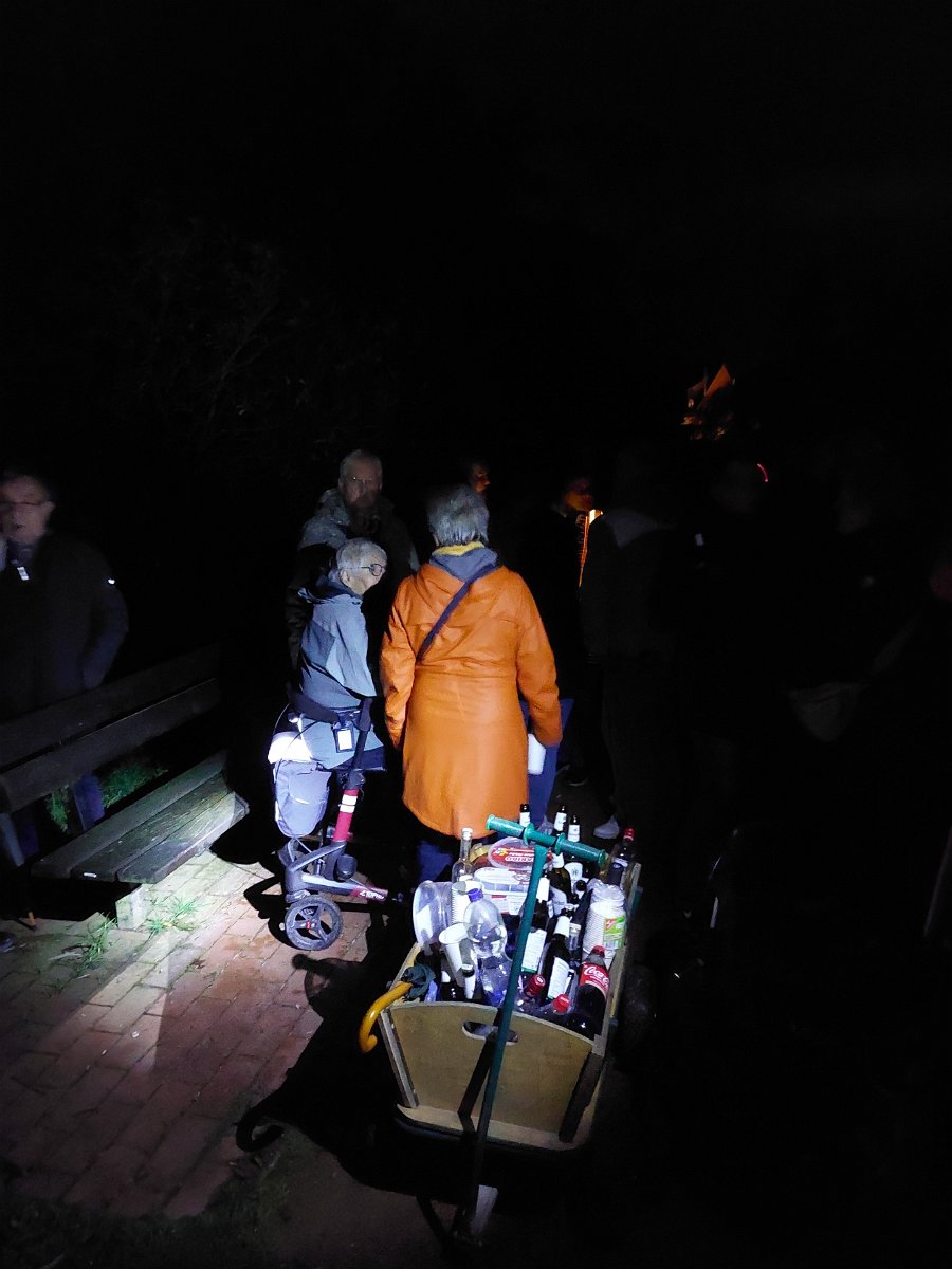 Vorbereitung läuft Deko wird auch herrgerichtet lustig ist immer gut Buffet ist gebracht Kutschersuppe und los gehts mit dem Essen schmeckt nun aber marsch Verpflegung für unterwegs Nachtszenen es wird dunkler Walsroder Nachtlichter in der Ferne Rätsel raten an den Banken und dann zurück.